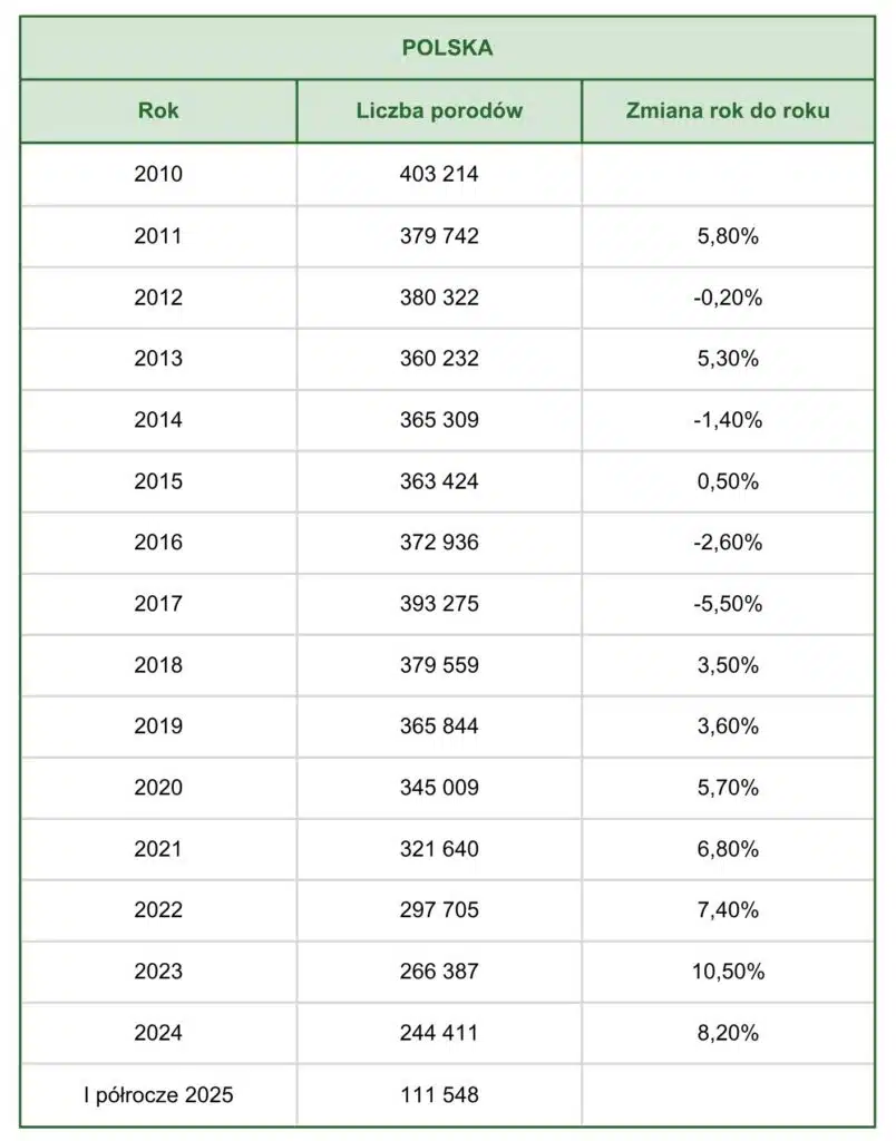 - Dane liczbowe pochodzą z strony https://ezdrowie.gov.pl/portal/home/badania-i-dane/zdrowe-dane/monitorowanie/porody-opieka-okoloporodowa [dostęp 13.11.2025 r.]